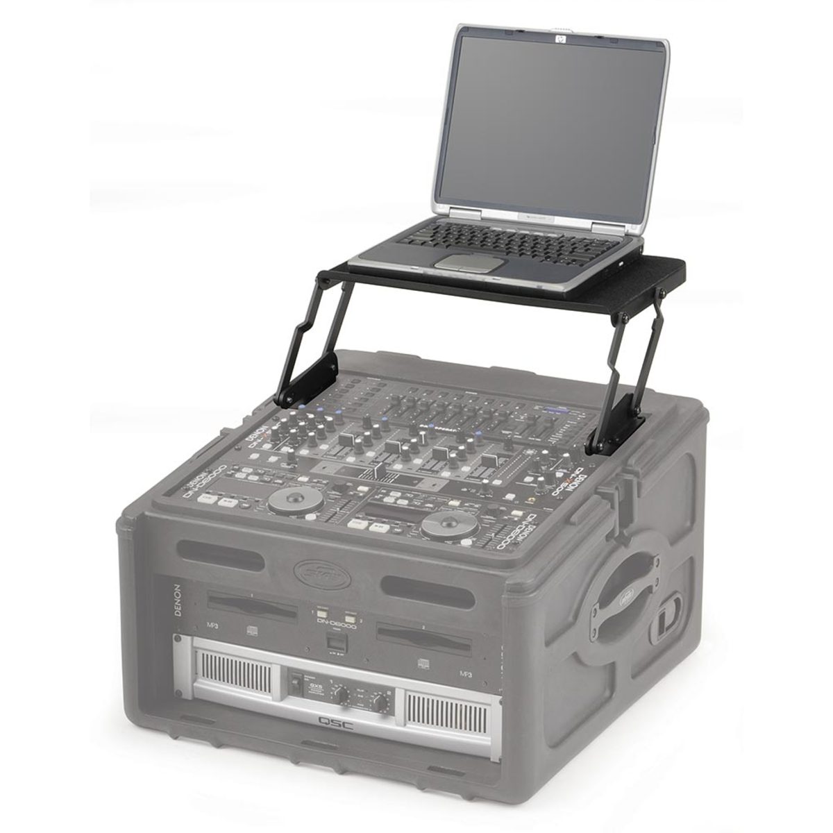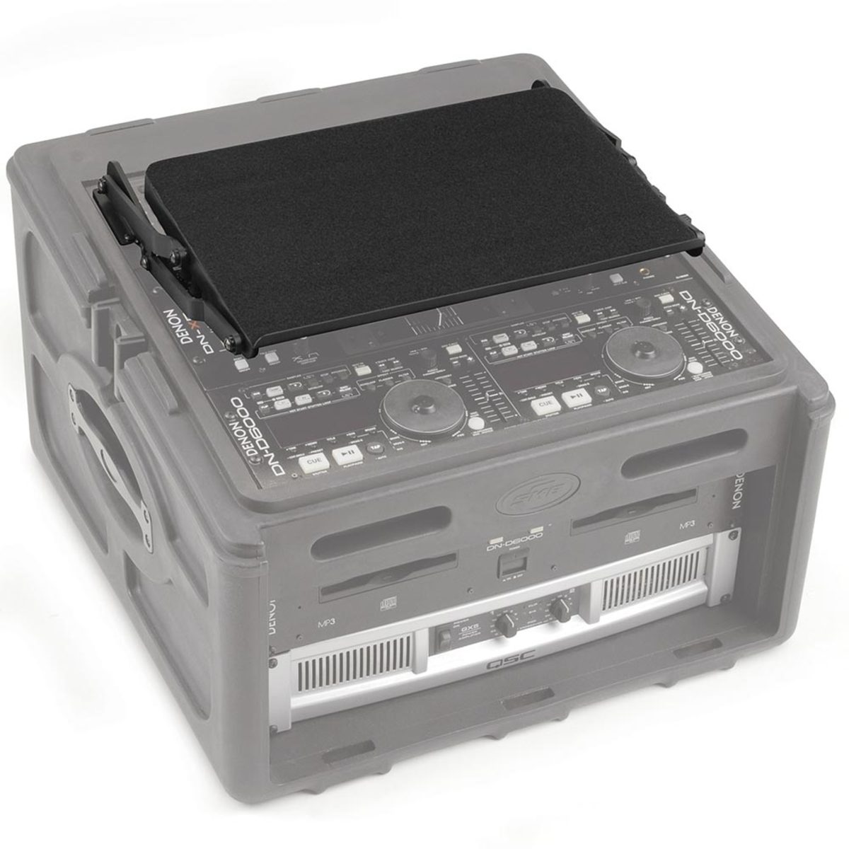The AV-8 is an 8U retractable shelf designed to be used with our 1SKB-R102, 1SKB-R104, 1SKB-R106 and 1SKB19-R1208 products. Not only is the AV-8 a great accessory/add-on for those products, but also can be mounted to any slant top mixer case with at least 8U of rack space, including our 1SKB-82DJ, 1SKB-84DJ and 1SKB-106DJ products. The AV-8 is the perfect solution for a laptop or projector.